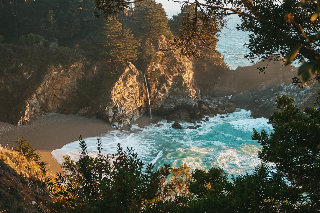 After we got back to the car, we drove back up the US 1 about 30 minutes to Julia Pfeiffer Burns Beach. This was a very shot and easy hike, it was the most gorgeous view in Big Sur. The parking lot was filled but we were easily able to finding parking at a nearby turn off and it was only a little over 2 miles total to walk down to the beach and back.